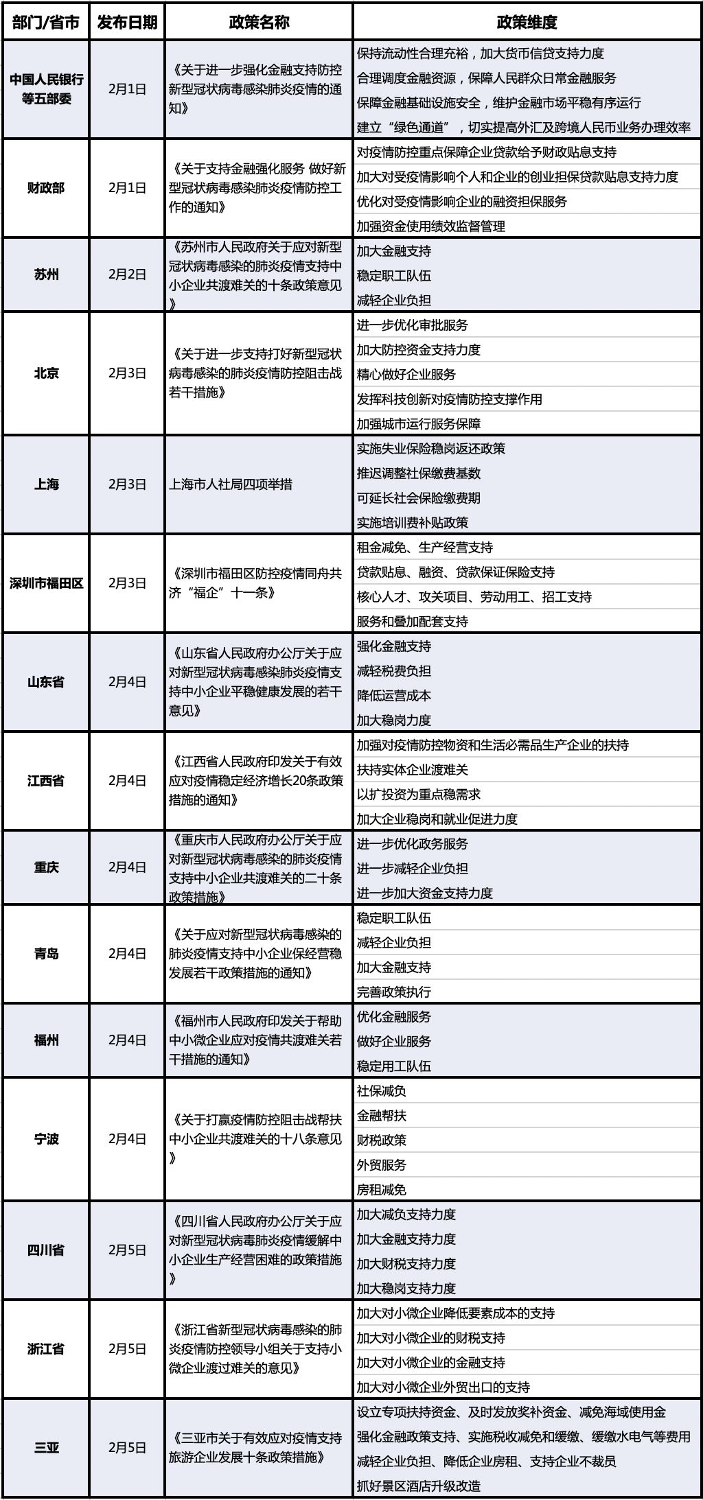 表 国家和地方出台应对疫情扶持企业发展政策汇总